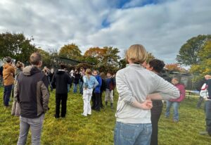 In Thüringen haben wir in Zusammenarbeit mit dem BUND an der deutsch-deutschen Grenze die Skulptur „BAUMKREUZ“ gepflegt. Mit ca. 50 Schülerinnen und Schülern wurden Wasserrinnen für die Bäume angelegt, das Kunstwerk „BAUMKREUZ“ freigeschnitten und Mahdgut aufgesammelt.